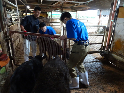 新入部員の染川さんは,餌やり,除ふんなど大変ですが,牛から元気をもらい楽しく活動していますと話してくれました。また,この日には牛の分娩もあり生命の誕生を間近に見る機会もありました。命を育てる畜産部への入部を希望した酒井さんは,はじめて牛の分娩を見て,生まれたての子牛を母牛が心配そうに見守っていたことが印象に残ったと話してくれました。